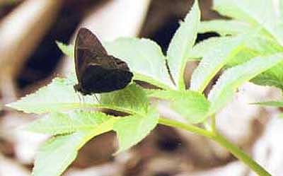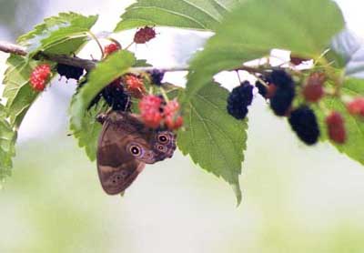 木立の中でよく見かけるジャノメチョウの仲間。