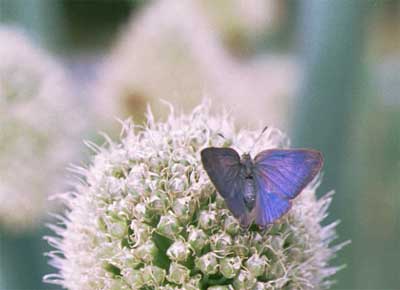 2.ネギボウズで青い表翅が光っている